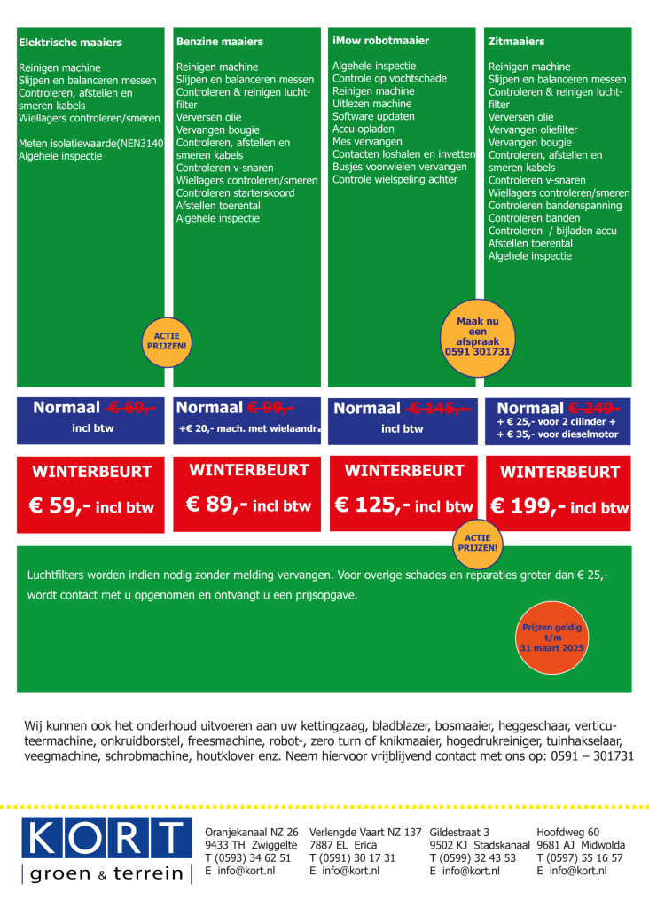 Klik hieronder op de foto’s om beurtenprogramma voor tuin- en parkmachines met vaste prijzen te bekijken!