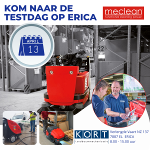 Ook Meclean is deze dag vertegenwoordigd op deze locatie. Bent u nog op zoek naar een veeg-, of schrobmachine of een hogedrukreiniger? Kom dan eens langs en ervaar zelf wat deze machines kunnen. Erik Paas is aanwezig voor een goed advies
