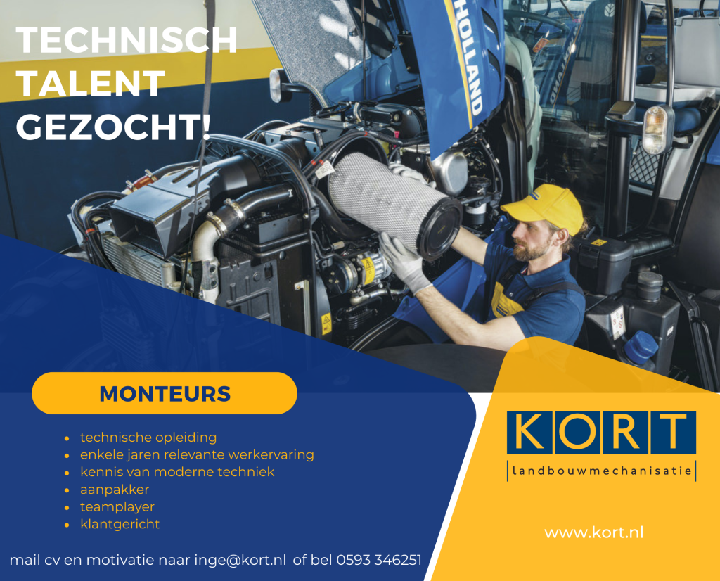 Wegens aanhoudende drukte zijn we doorlopend zoek naar goede monteurs op diverse locaties . Heb je ervaring in de landbouwtechniek en zou je willen uitgroeien tot een specialist op het gebied van New Holland trekkers, oogstmachines of andere machines? Kom dan eens langs om te praten over de mogelijkheden!